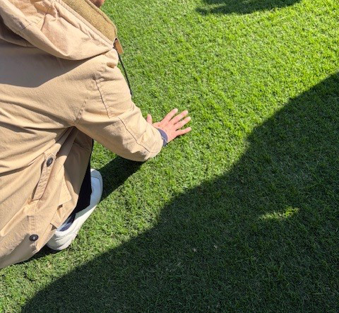 綺麗に手入れされた芝にそっと手を触れてみました。